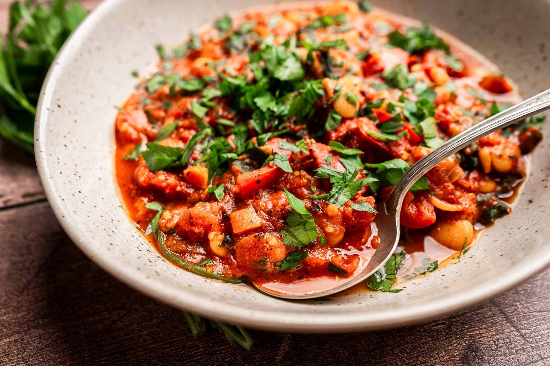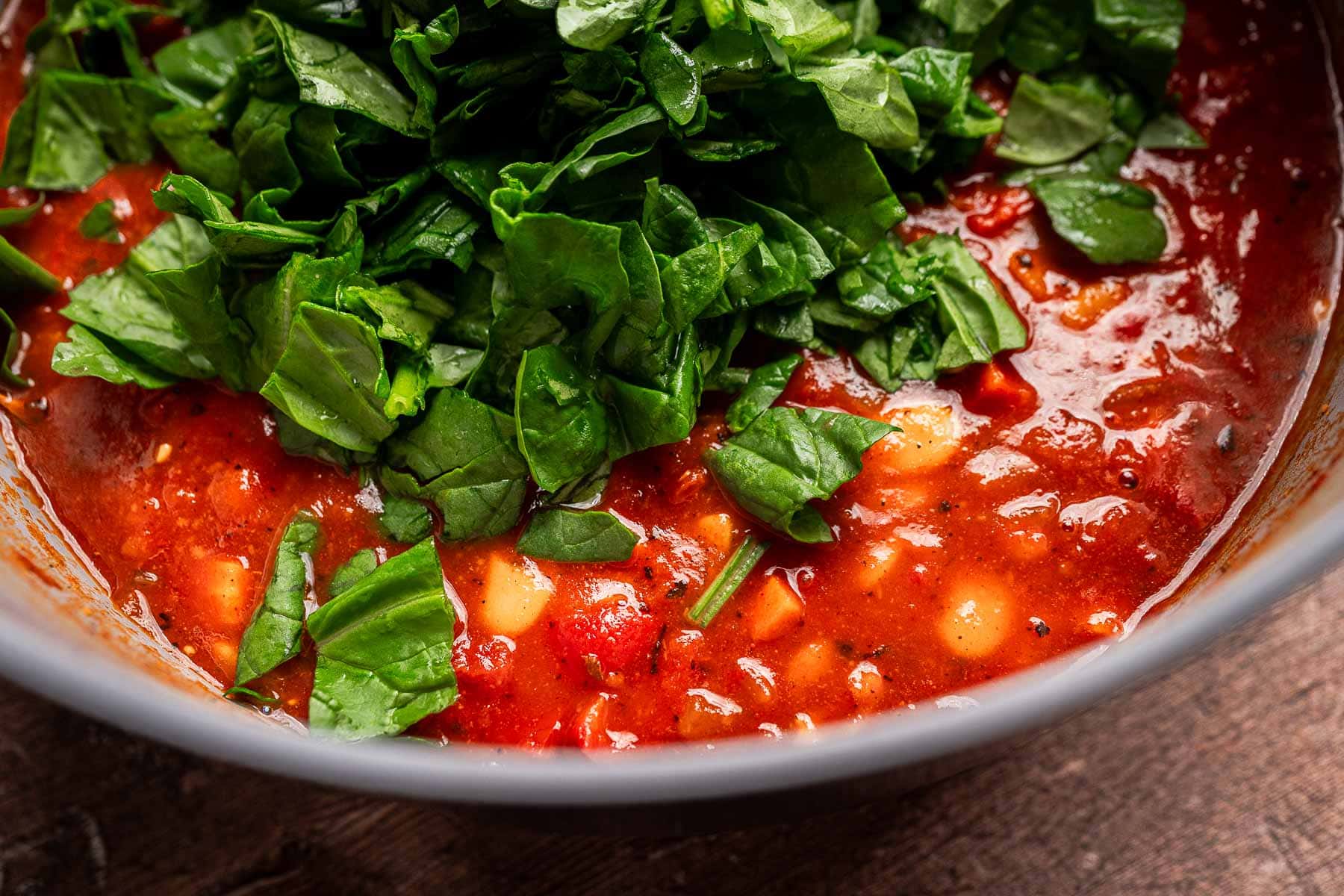 - Simmer uncovered for 25–30 minutes, stirring occasionally, until the flavors meld and the stew thickens slightly. Stir in the fresh spinach during the last five minutes of cook time.