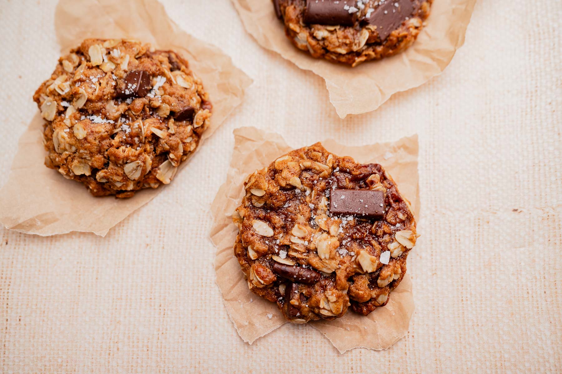 Preheat the oven to 350°F and line a baking sheet with parchment paper. In a large bowl, combine the oats, almond flour, baking soda, cinnamon, and salt, then mix until evenly incorporated.