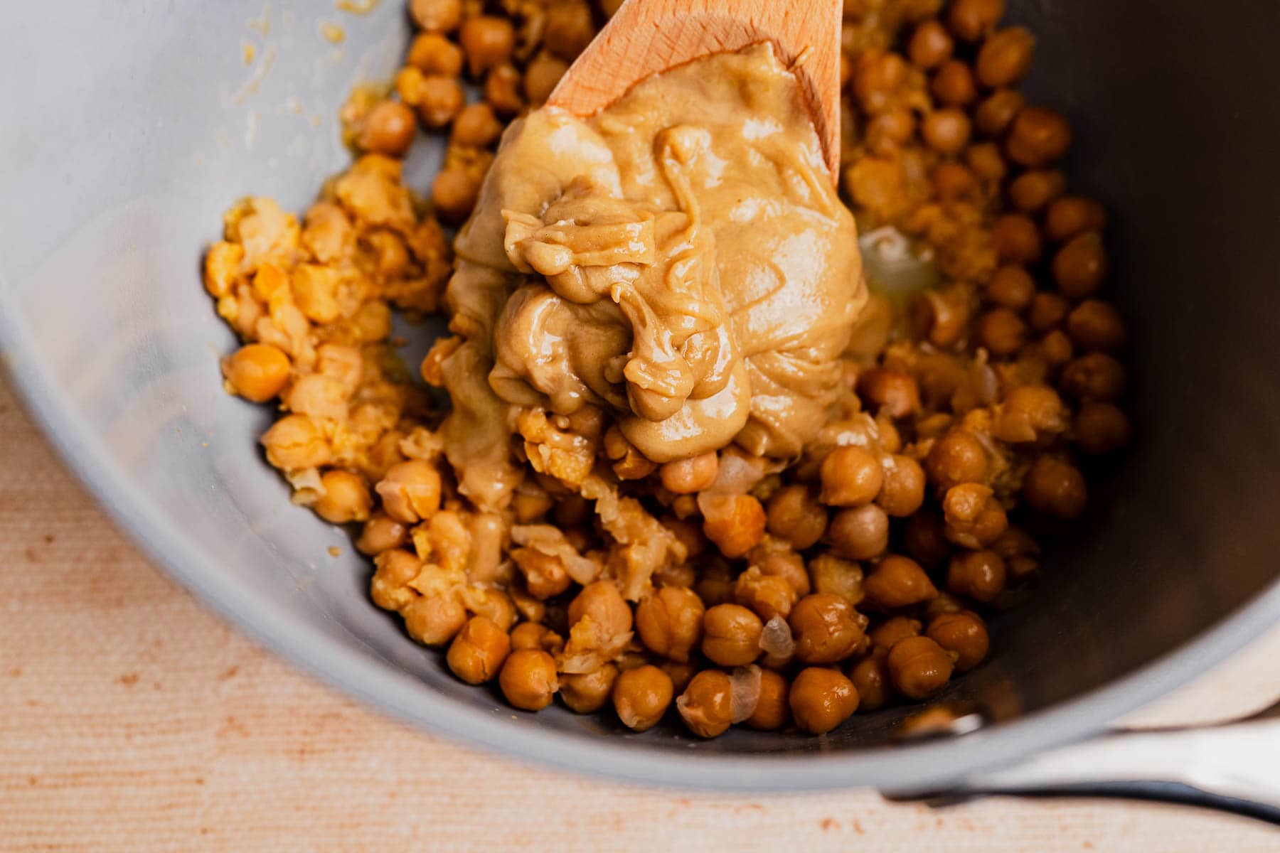 - If the mixture seizes up or thickens too much, stir in a spoonful of warm chickpea liquid or olive oil to thin it out.