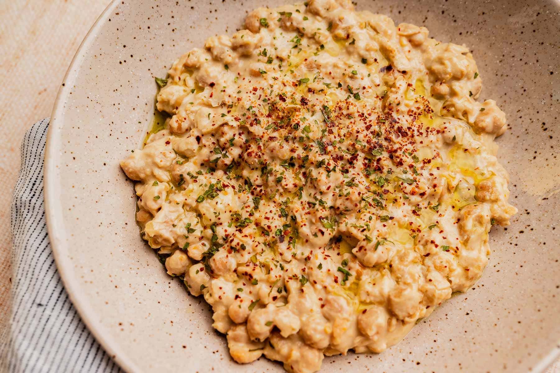 Spoon into a shallow bowl, drizzle with olive oil, add parsley and Aleppo pepper if using, and serve warm. Enjoy!