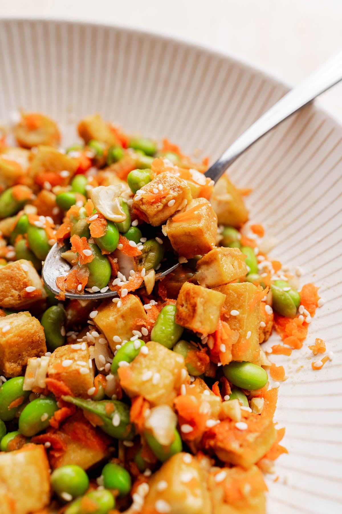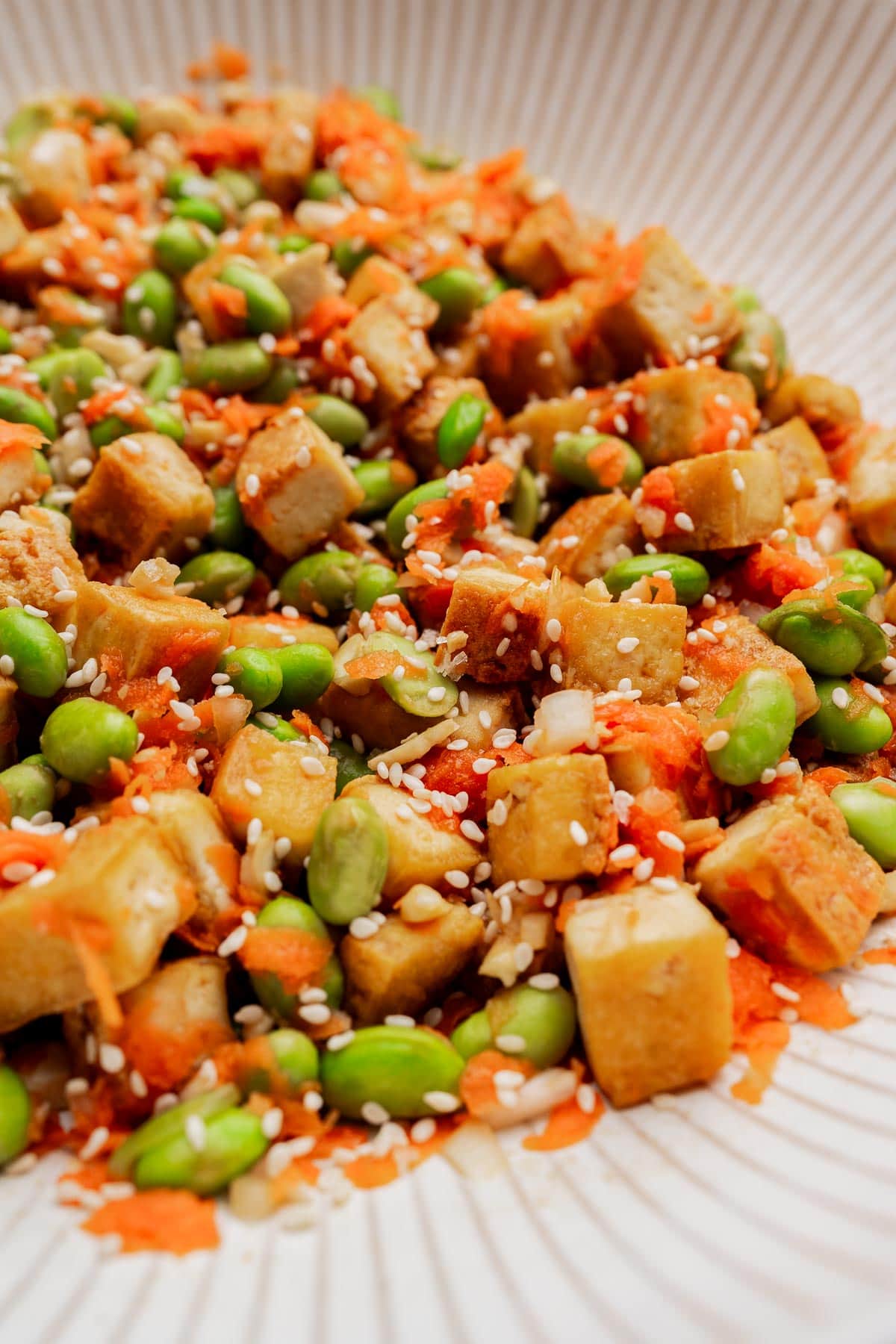 High-Protein Ginger Sesame Tofu Edamame Salad