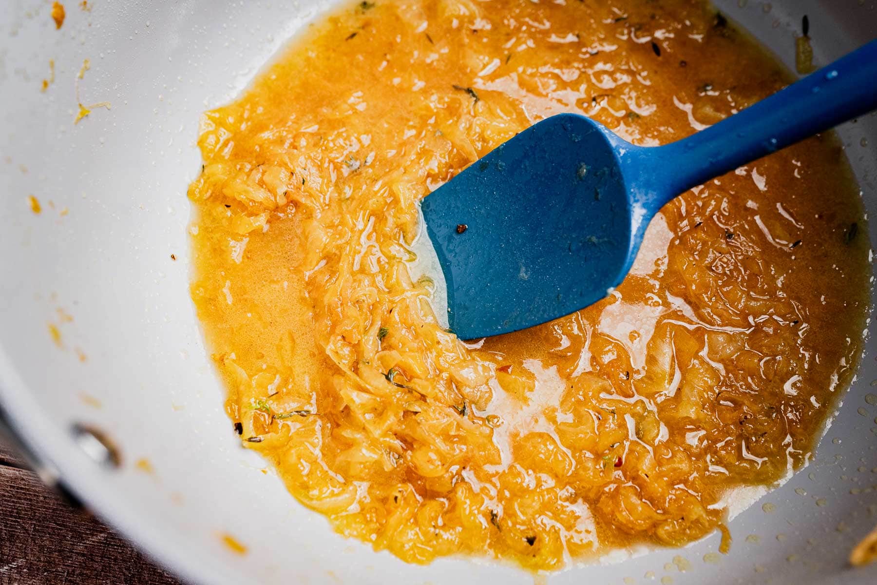 - Don’t rush when cooking the onions! Gently cooking them allows their natural sugars to develop without burning and turning them bitter. The time it takes to caramelize them will vary slightly from stovetop to stovetop, as well as the type of pot used.