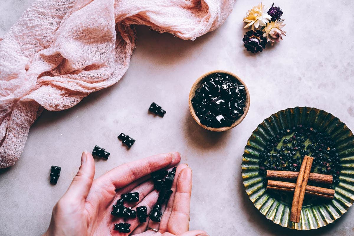 Like gummy bears, but much better for you, these vegetarian elderberry gummies are a tasty sweet treat! Made with vitamin-rich elderberries, they are great for boosting the immune system.